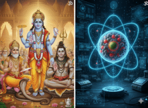 It’s Brahma-Vishnu and Shiva for Believers, For Non-Believers It’s Electron-Proton and Neutron.